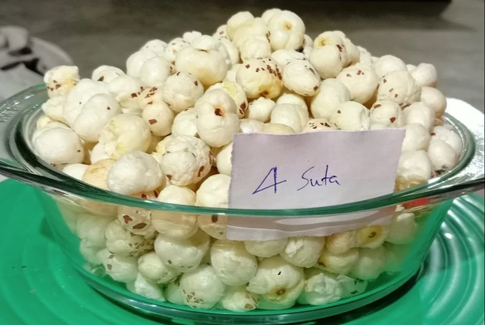 4 Suta Premium Raw Phool Makhana is made with good lotus seeds that puff up to a medium size (around 14-16 mm). They're dried the natural way, so they're nice and crunchy, with lots of protein, calcium, and antioxidants. They're great for roasting, snacking on, or even using in temple offerings. And we pack them in a clean way to keep them fresh and pure.
