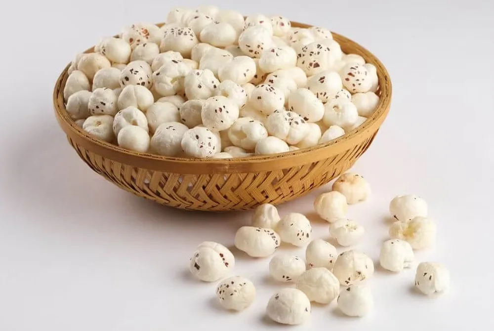 6 Suta Premium Raw Phool Makhana are top-notch, big lotus seeds (around 18-22 mm). People love them because they're super crunchy, clean, and good for you. They're dried in the sun and sorted by hand to make sure they're all the same size and great quality. They are perfect for fancy snacks, selling overseas, and holiday treats.